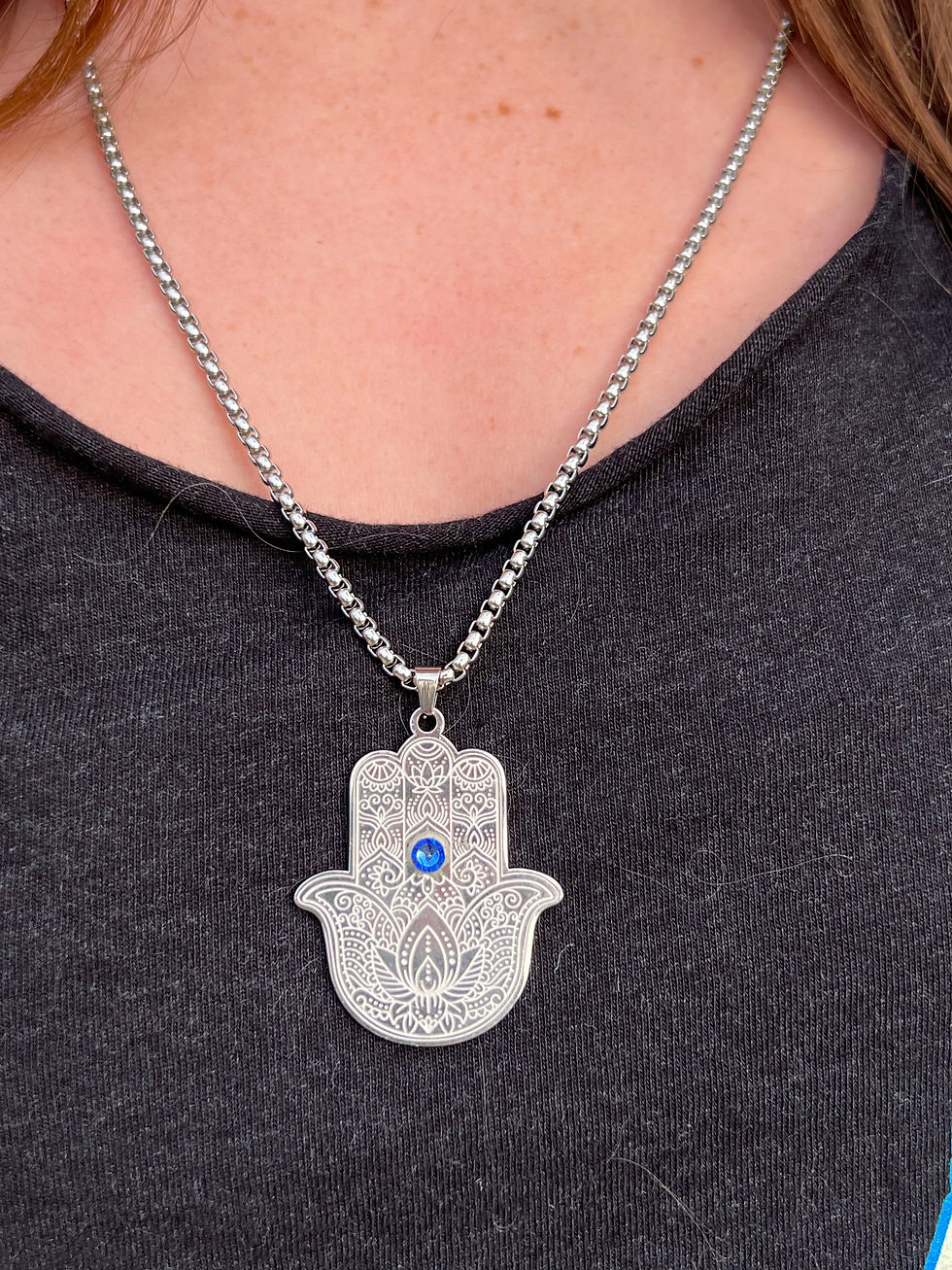Amulet of Lilith Necklace Hamsa Stainless Steel 24 Inch Chain